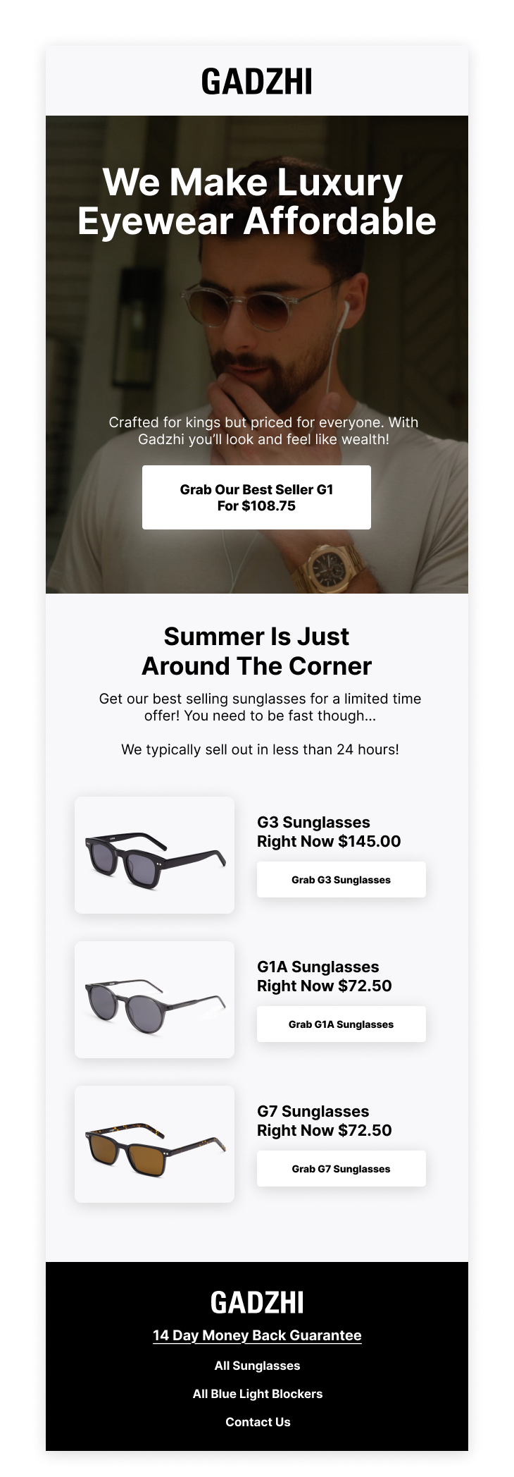 Here are a few of our high-converting emails. If you want similar emails written and designed for your business without any upfront costs, please book a call with us below!